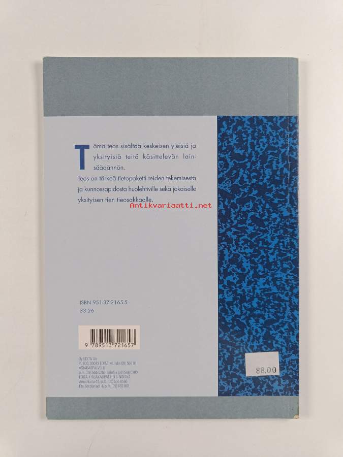 Muu(t) tekijä(t): Päivi KämäräinenSarja: LakikokoelmaAsiasanat: lainsäädäntö, tiet, yksityistiet