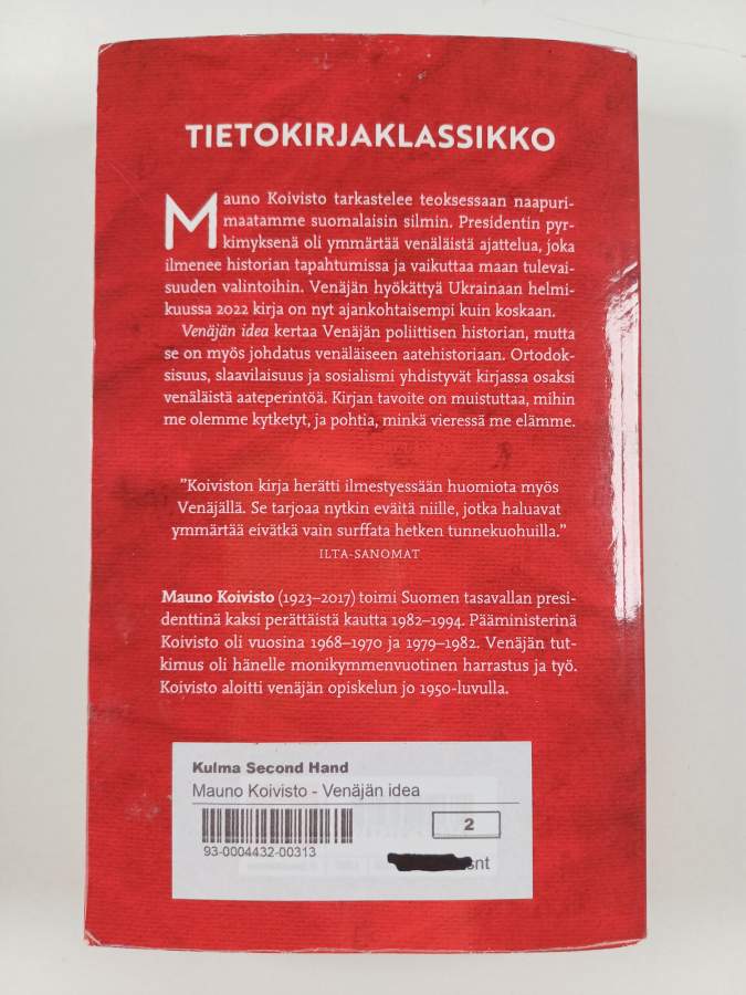 Hyvä. Tarkempi kuntoluokka: K3+ ; Hieman kulumaa, takana vanha hintalappu