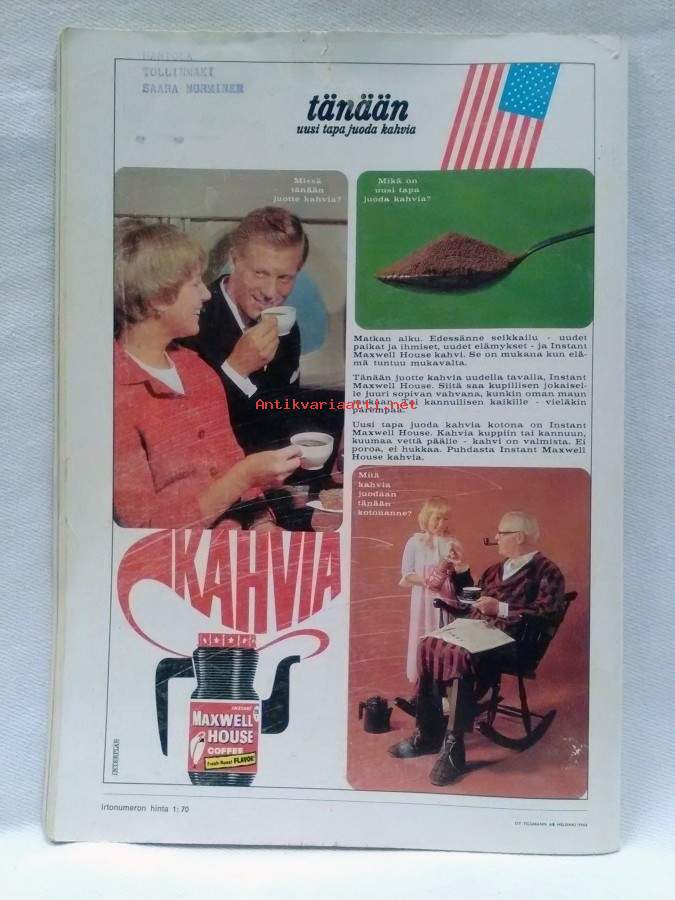 132s., sivua 87/88 leikattu, sisällys mm. Lady Bird Johnson, Kuudet kaksoset samassa perheessä, Rauni Enkola, Naantalin viulutyttö, Fagervikin kartano