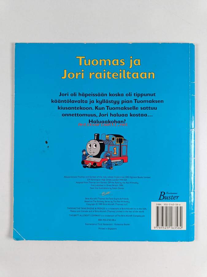 Muu(t) tekijä(t): W. Awdry, Tintti KeskevaariSarja: Tuomas ja ystävätAlkuteos: Thomas and Gordon off the railsAsiasanat: lastenkirjallisuus, junat, veturit, kuvakirjat, tottelemattomuus
