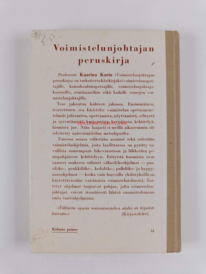 Voimistelunjohtajan peruskirjaKirjaHenkilö Kari, Kaarina, WSOY 1963.
