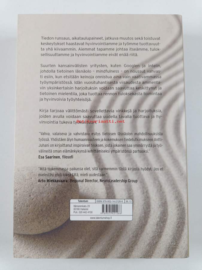 Merkinnät: ylivedetty omistajamerkintäAsiasanat: johtaminen, mietiskely, työelämä, kehittäminen, stressinhallinta, tietoisuus, tietoinen läsnäolo, tunnetaidot, oppaat (teokset), harjoitukset
