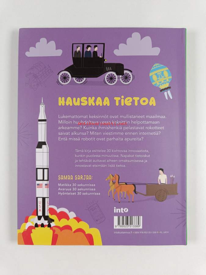 Muu(t) tekijä(t): Tarja Kontro, Chris AndersonSarja: 30 sekunnissaAlkuteos: Inventions in 30 SecondsAsiasanat: historia, keksinnöt, teknologinen kehitys, teknologia, tiede, innovaatiot, tehtävät