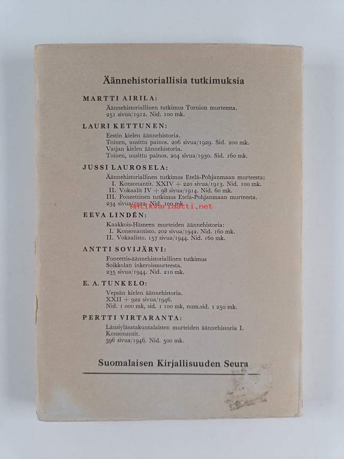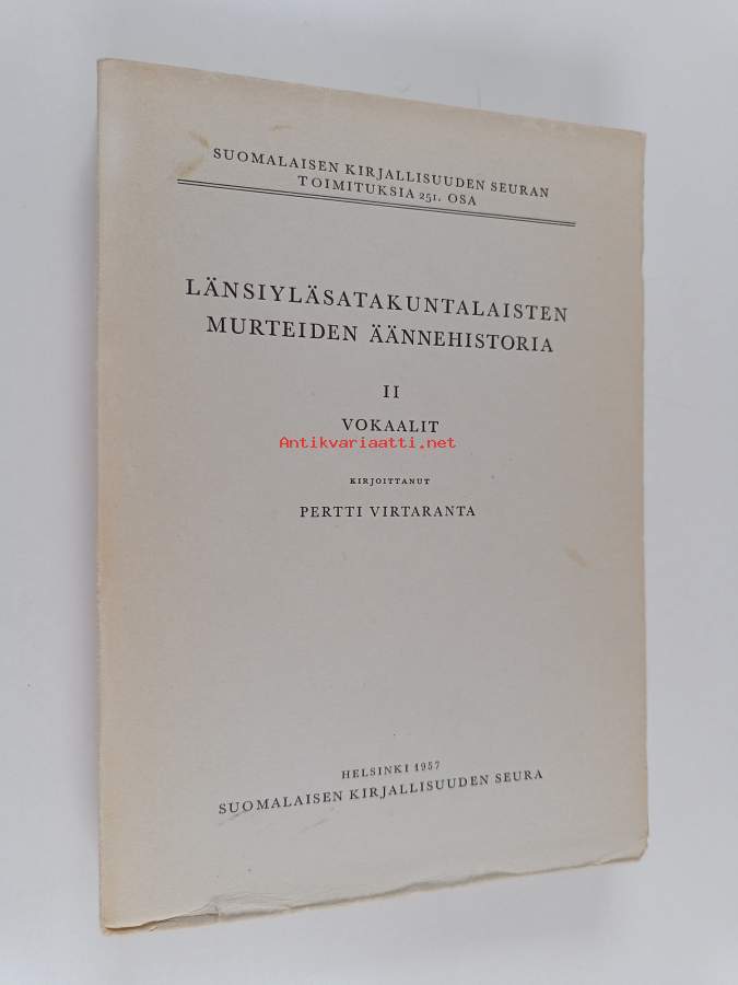 Sarja: Länsiyläsatakuntalaisten murteiden äännehistoria 2; Suomalaisen Kirjallisuuden Seuran toimituksia 251