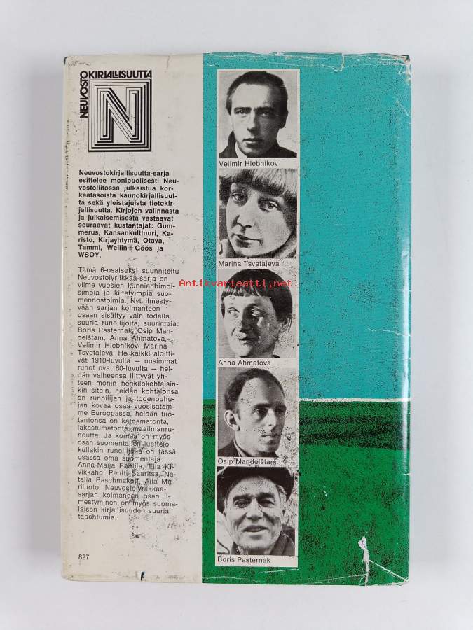 Muu(t) tekijä(t): Aila Meriluoto, Anna-Maija Raittila ym.Merkinnät: omistajamerkintäSarja: NeuvostokirjallisuuttaAsiasanat: kirjallisuus, runoilijat, lyriikka, venäläinen kirjallisuus
