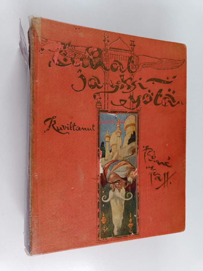 selkämys puuttuu (korvattu kartongilla), teippausta kansissa, pienoista tahraisuutta muutamalla sivulla, muutamaa aukeamaa teipattu