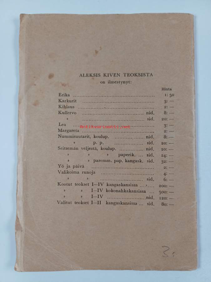 Lea : näytelmä yhdessä näytöksessäKirjaHenkilö Kivi, Aleksis, Suomalaisen Kirjallisuuden seura 1907.