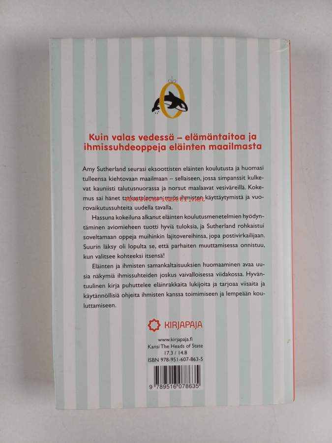 Muu(t) tekijä(t): Sirpa HietanenAlkuteos: What Shamu taught me about life, love, and marriageAsiasanat: ihminen, ihmissuhteet, parisuhde, eläimet käyttäytyminen