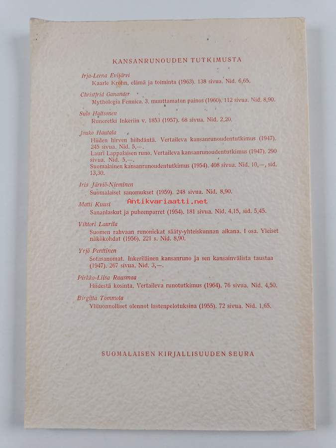 Sarja: Suomalaisen Kirjallisuuden Seuran toimituksia 282Asiasanat: kansanrunous, arvoitukset, folkloristiikka