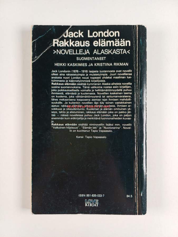 Hyvä. Tarkempi kuntoluokka: K3- ; Hieman kulumaa kansissa, pienoista kolhua kansissa, pienoista repeämää selkämyksen päissä, hieman taitejälkeä kansissa, selkämyksessä hieman vinoutta, selkämyksessä lukutaittumaa