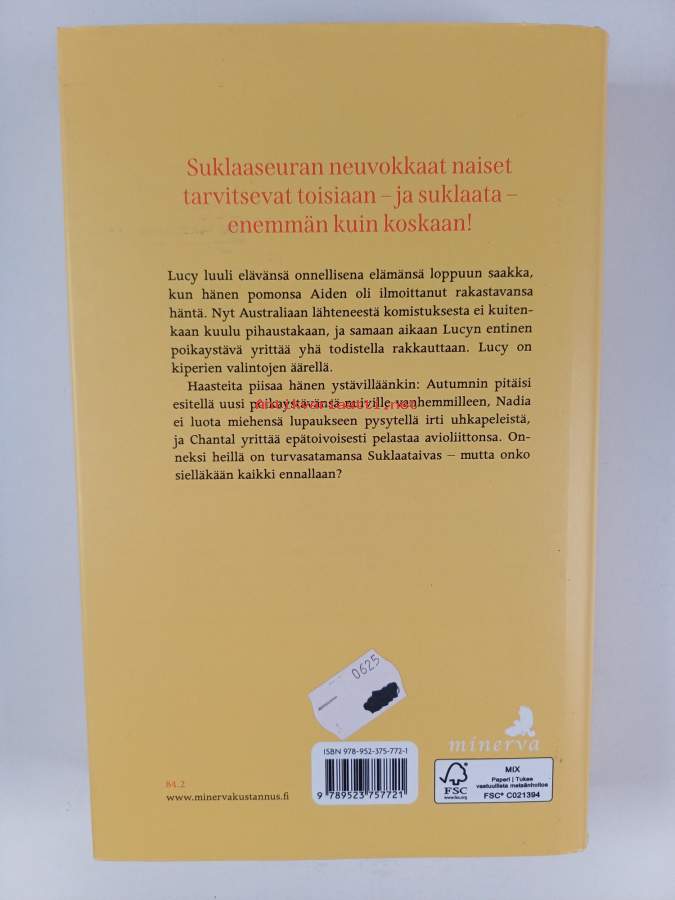 Sarja: SuklaaseuraAlkuteos: The Chocolate Lovers' DietAsiasanat: naiset, ihmissuhteet, parisuhde, ystävyys, Lontoo, kerhot, suklaa, Iso-Britannia, kahvilat, koettelemukset