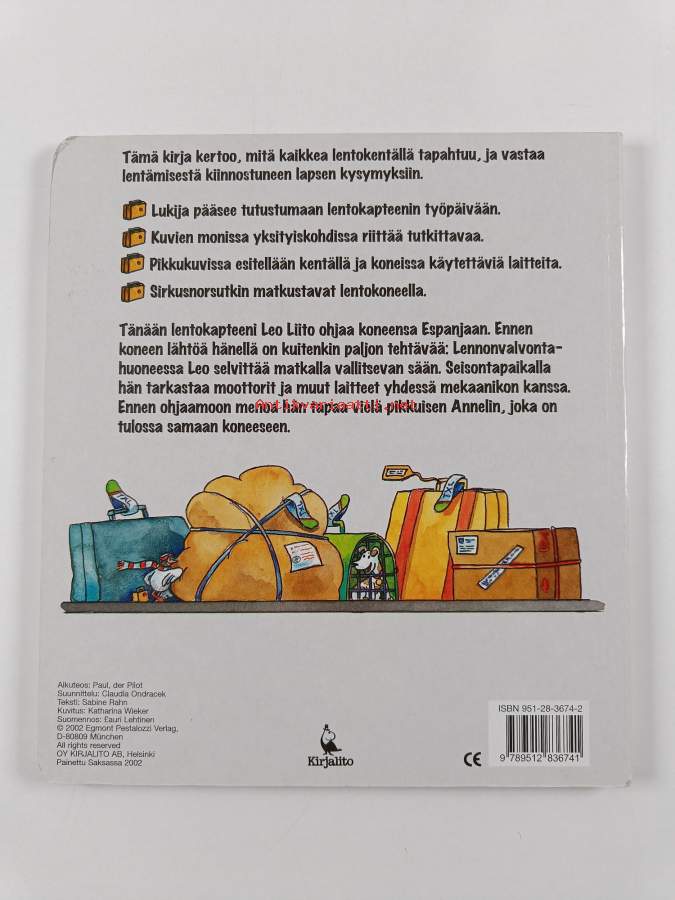 Muu(t) tekijä(t): Lauri Lehtinen, Katharina WiekerAlkuteos: PAUL, DER PILOTAsiasanat: lastenkirjallisuus, lentäjät, lentokentät, lentoasemat, lentäminen, kuvakirjat, paksulehtiset kirjat