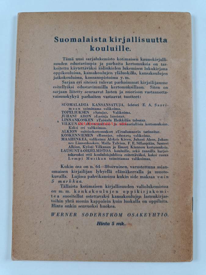 Sarja: Suomalaista kirjallisuutta kouluille XII