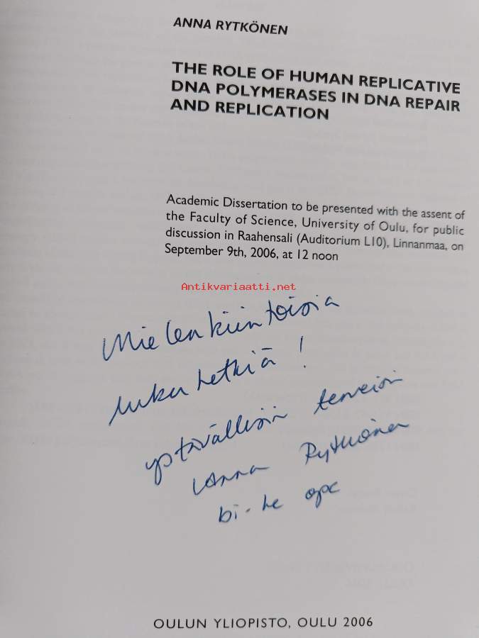 The Role of Human Replicative DNA Polymerases in DNA Repair and Replication (signeerattu, tekijän omiste)