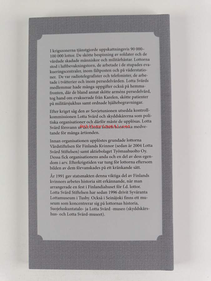 Muu(t) tekijä(t): Ilmari Hakala, Karin Nynäs-AspöAsiasanat: historia, naiset, sotahistoria, lotat, maanpuolustusjärjestöt, kvinnor, försvarsorganisationer, lottor, krigshistoria