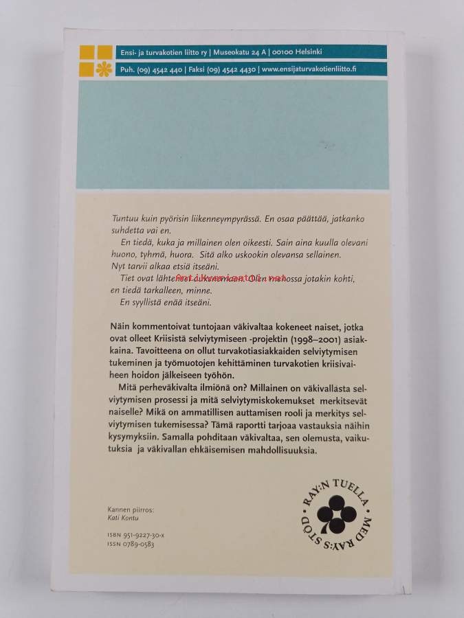 Muu(t) tekijä(t): Auli Ojuri, Katri KontuSarja: Ensi- ja turvakotien liiton julkaisu 29Asiasanat: naiset, tukimuodot, parisuhde, kriisit, selviytyminen, väkivalta, perheväkivalta, turvakodit, jälkihuolto