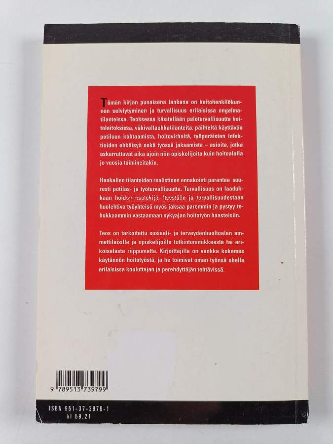 Muu(t) tekijä(t): Heikki Jaakkola, Olli KoivunenAsiasanat: hoitotyö, turvallisuus, jaksaminen, päihteet, väkivalta, paloturvallisuus, työpaikat, potilaat, tartuntataudit, infektiot, hoitohenkilöstö, työturvallisuus, työntekijät, sosiaaliala, terveydenhuoltohenkilöstö, pelko, hygienia, turvavarusteet, potilasturvallisuus, terveysala, potilasvahingot, hoitovirheet