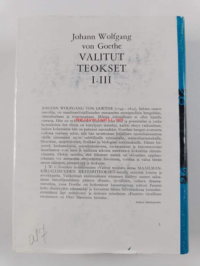 Hyvä. Tarkempi kuntoluokka: K3- ; Hieman kulumaa, hieman tahraisuutta, sidos hieman näkyvissä parilla aukeamalla. Kansipaperin kunto: jonkin verran kulumaa/pienoisia repeämiä