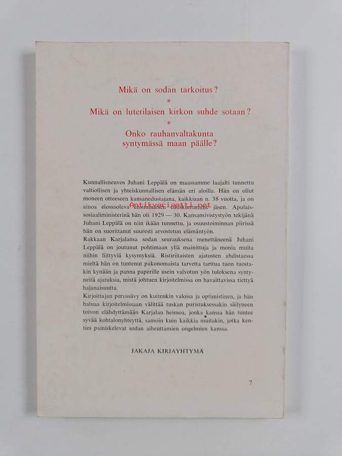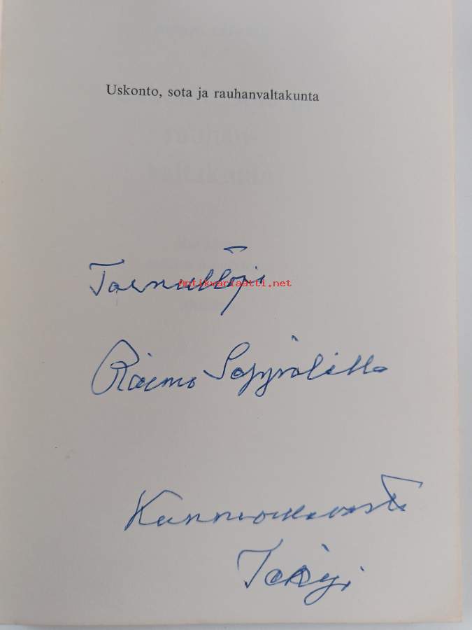 Uskonto, sota ja rauhanvaltakunta : Karjalansa sodassa menettäneen kansanmiehen ajatuksia (signeerattu, tekijän omiste)