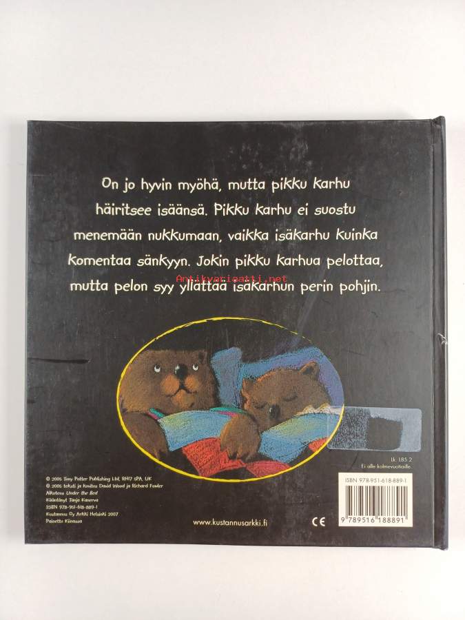Muu(t) tekijä(t): Tanja Kanerva, Richard FowlerAlkuteos: Under the bedAsiasanat: lastenkirjallisuus, karhut, pelot, yö, kuvakirjat, nukkumaanmeno
