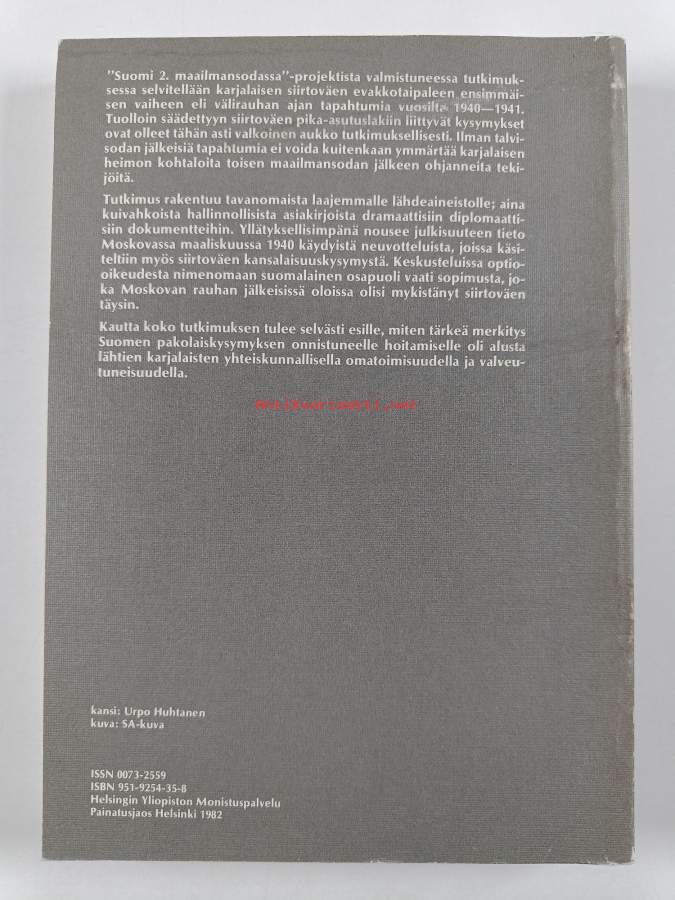 Koko nimi: Siirtoväen pika-asutuslaki 1940 : asutuspoliittinen tausta ja sisältö sekä toimeenpano = The prompt settlement act of 1940 for displaced persons : its background, content and executionSarja: Historiallisia tutkimuksia 117