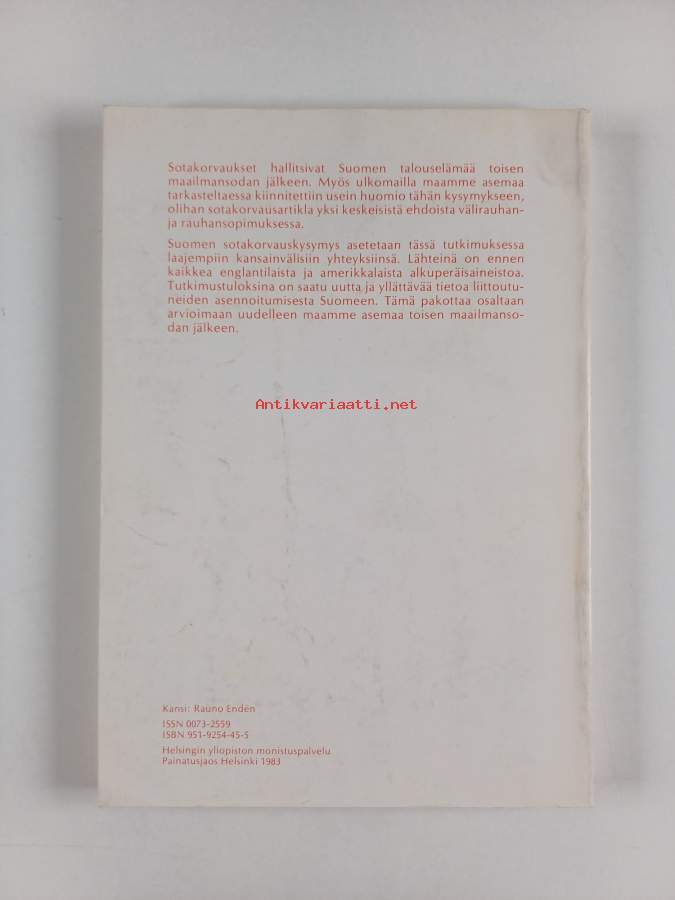 Merkinnät: omistajamerkintäSarja: Historiallisia tutkimuksia 121Asiasanat: historia, sotakorvaukset