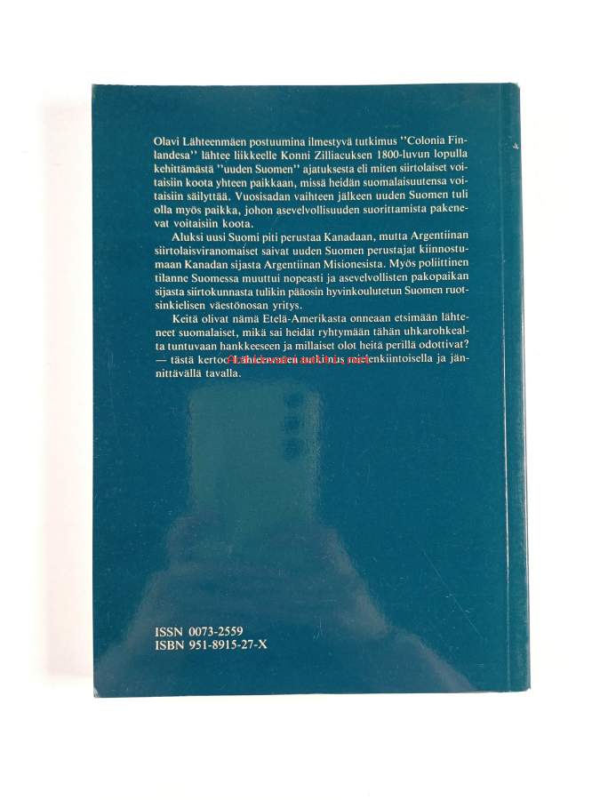 Sarja: Historiallisia tutkimuksia 154Asiasanat: suomalaiset, siirtolaiset, siirtolaisuus, argentiinansuomalaiset