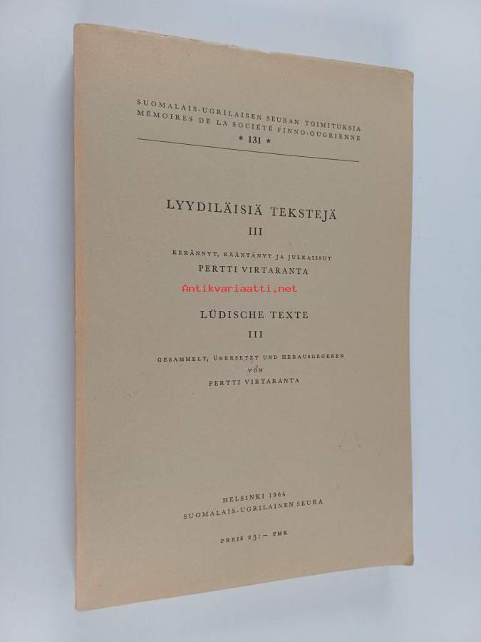 Muu(t) tekijä(t): Pertti VirtarantaSarja: Suomalais-ugrilaisen seuran toimituksia 131Asiasanat: kansanperinne, tapakulttuuri, kuolema, historialliset tarinat, vuotuisjuhlat, juhlat, häät, kronikat, etnisyys, lyydiläiset, uskonnollinen perinne, folktradition, döden, fester, bröllop, seder och bruk, årets fester, etnicitet, historiska sägner, kronikaatit, lyder, ryhmien väliset suhteet, intergrupprelationer