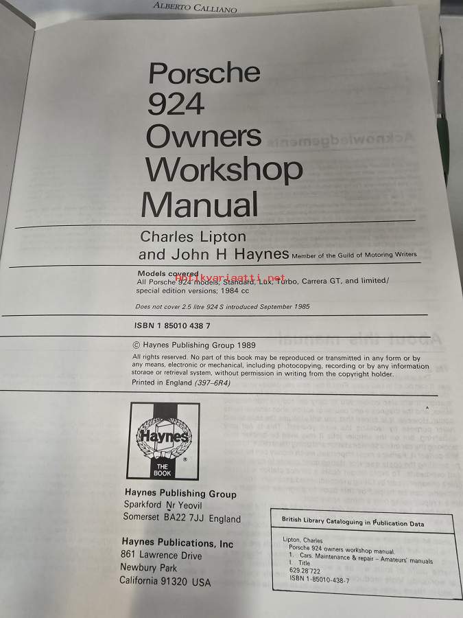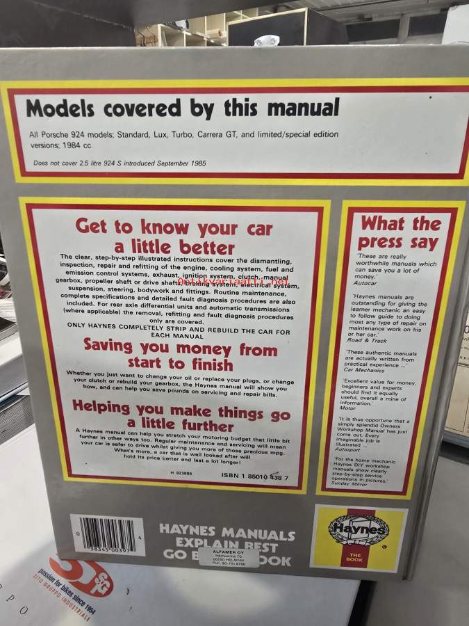 Porsche 924 owners workshop manual.