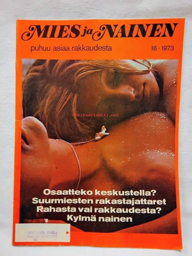 " Täydellinen tietoteos miehen ja naisen välisestä suhteesta, rakkaudesta. . . " , Ilmestynyt huhtikuu 1973, 32s., sisällys mm. Avioliitto rahasta vai rakkaudesta?, Puhtaus sukupuolisen viehätysvoiman olennainen osa, Suurmiesten kuuluisat lemmityt: Madame de Pompadour, Madame Recamier, Madame du Barry, Nell Gwyn, Diane de Poitiers, Cleo de Merode, Isadora Duncan, Kylmä nainen fridigiteetti, Osaako pariskunta keskustella, Asiantuntijan vastaanotolla: Kuin pahat kakarat: uskonnolliset, rodulliset, kansalliset ja kulttuuritekijät aiheuttavat riitoja, Munatorvet