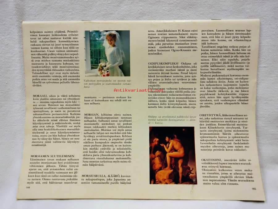 " Täydellinen tietoteos miehen ja naisen välisestä suhteesta, rakkaudesta. . . ", Ilmestynyt syyskuu 1973, 32s., keskiaukeama irti yläniitistä, sisällys mm. Naisen ruumis ja raskaus, Sopeutuva suhde, Miksi rakkaus on kaupan? Prostituutio, Rakkaus on iloinen asia, Miksi mies pakenee?, Asiantuntijan vastaanotolla: Hän on naimisissa, Ensitapaaminen
