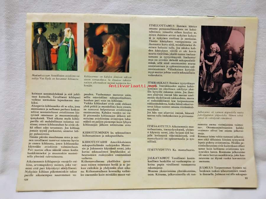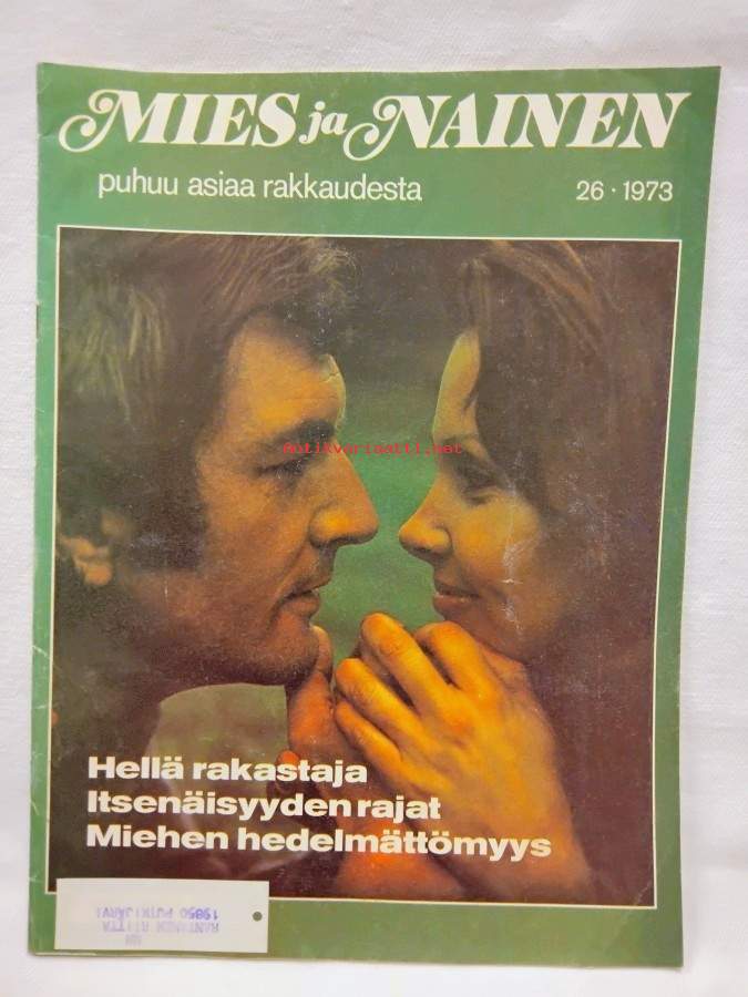 " Täydellinen tietoteos miehen ja naisen välisestä suhteesta, rakkaudesta. . . ", Ilmestynyt kesäkuu 1973, vähäistä taitetta, alaniitin kohdalla pieni rispauma, 32s., sisällys mm. Miehen hedelmättömyys, Esiaviollinen seksi, Itsenäisyyden rajat, Tiedätkö mitä huume on?, Hellä rakastaja, Asiantuntijan vastaanotolla: Menetin kykyni, Mies, isä vai opettaja? Vaimon tapojen ja käyttäytymisen muuttamisen haluaminen