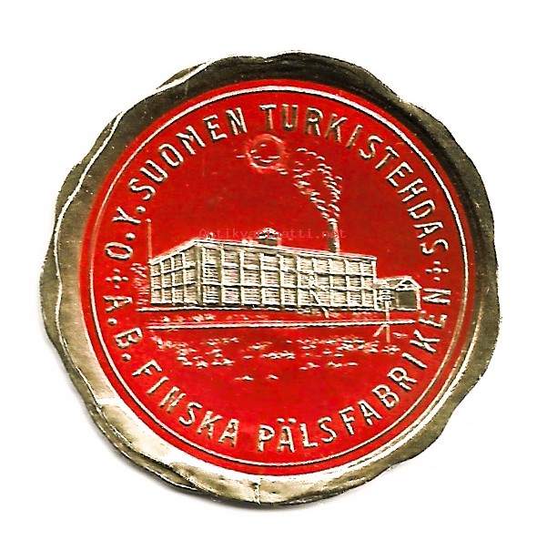 Suomen Turkistehdas korkopaino kohopaino tuotemerkki logo 40 mm pahvia
