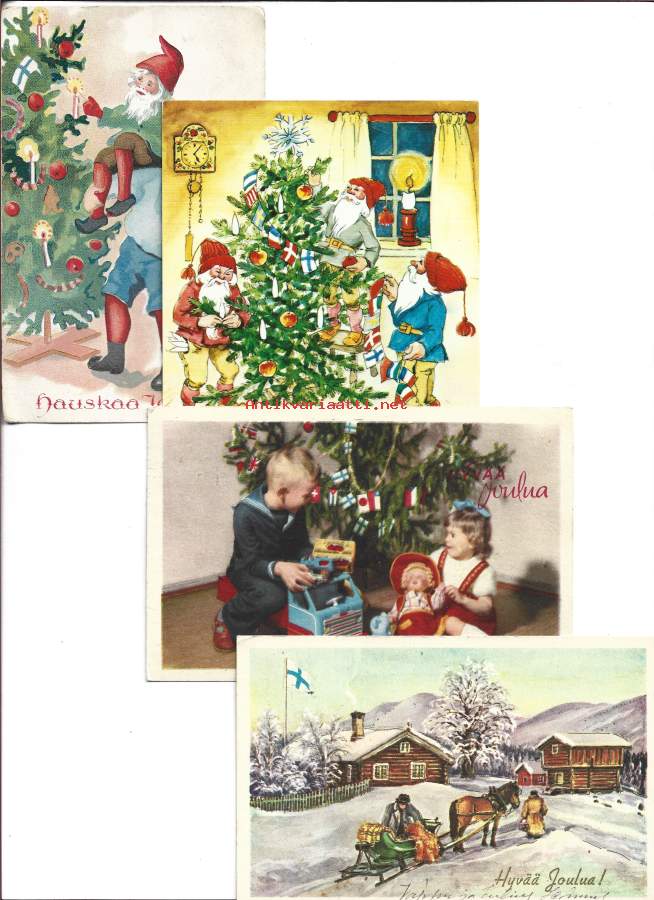 Lippuja joulukortti lippupostikortti postikortti 4 kpl erä