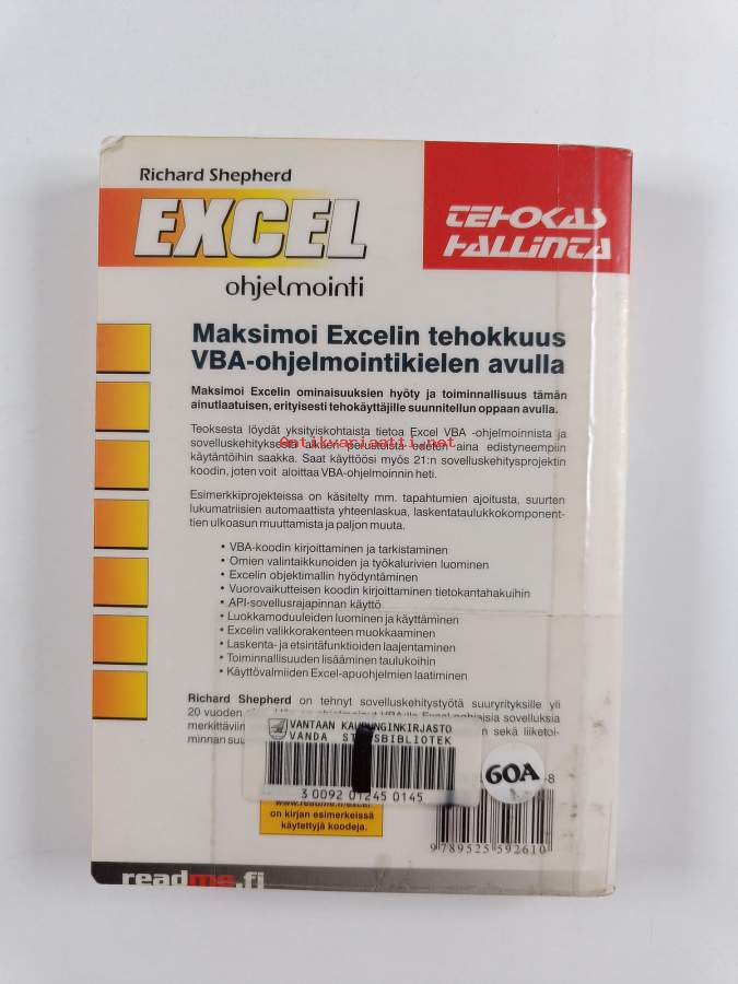 Muu(t) tekijä(t): Outi LammiAlkuteos: Excel VBA macro programmingAsiasanat: ohjelmointi, ohjelmointikielet, taulukkolaskenta, Excel, tietokoneohjelmat, Visual Basic for Applications