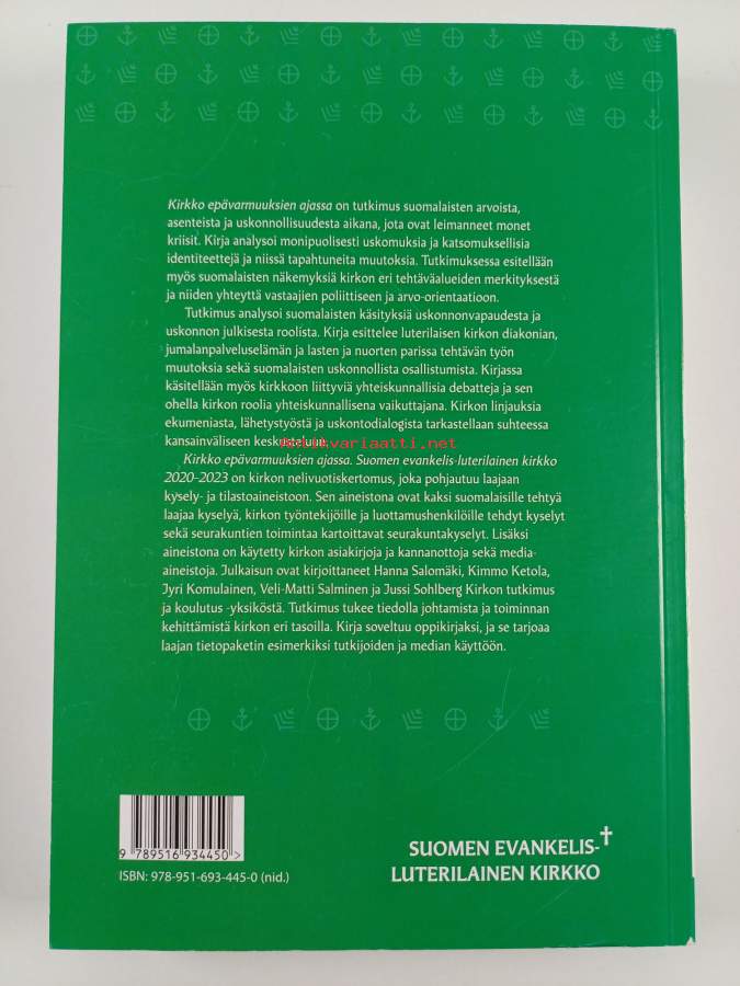 Sarja: Suomen ev.-lut. kirkon tutkimusjulkaisuja 147Asiasanat: naiset, sodat, puolustusvoimat, papit, koulutus, usko, politiikka, talous, seurakunnat, ekumenia, jumalanpalvelus, kriisit, uskonto, identiteetti, sosiaalinen media, miehet, kirkko, hengellisyys, evankelis-luterilainen kirkko, pukeutuminen, juhlapäivät, maahanmuutto, kasvatus, koulut, yhteiskunta, sananvapaus, kirkolliset toimitukset, sairaalat, ympäristö, diakonia, henkilöstö, vähemmistöt, varhaiskasvatus, uskonnollisuus, uskonnolliset yhteisöt, henkisyys, rippikoulu, valtio, julkiset tilat, uskonnonvapaus, vankila, luottamushenkilöt, tunnustus, uskontodialogi, sairaalapapit, vankilapapit, ohjelmat (media), kodit, kirkkolaki, COVID-19, arvot (käsitykset), missio, katsomukset, seurakuntavaalit