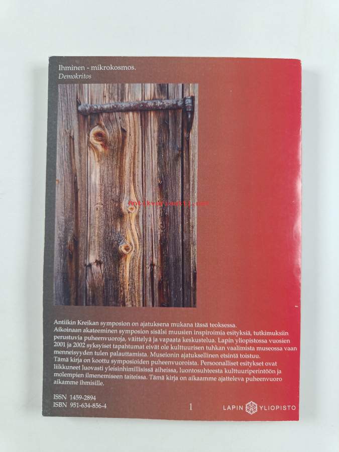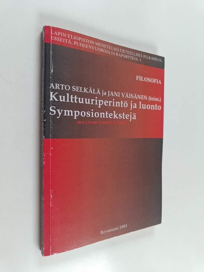 Muu(t) tekijä(t): Arto Selkälä, Jani VäisänenMerkinnät: omistajamerkintäSarja: Lapin yliopiston menetelmätieteellisiä julkaisuja : esseitä, puheenvuoroja ja raportteja 1Asiasanat: luonto, alkuperäiskansat, matkailu, taide, ihmisoikeudet, kuvataide, kulttuuri, filosofia, luonnonvarat, avaruus, arvot, identiteetti, rodut, teoriat, tutkijat, maailmanperintökohteet, kulttuuriperintö, maisema, oikeudet, saamelaiset, omistusoikeus, ympäristöfilosofia, maanomistus, rasismi, eriarvoisuus, nationalismi, Kuu (Maan), maailmankansalaisuus