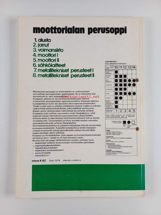 Muu(t) tekijä(t): Pekka Mattila, Veikko Hyvärinen ym.Sarja: Moottorialan perusoppi 1Asiasanat: ammatilliset oppilaitokset, oppikirjat