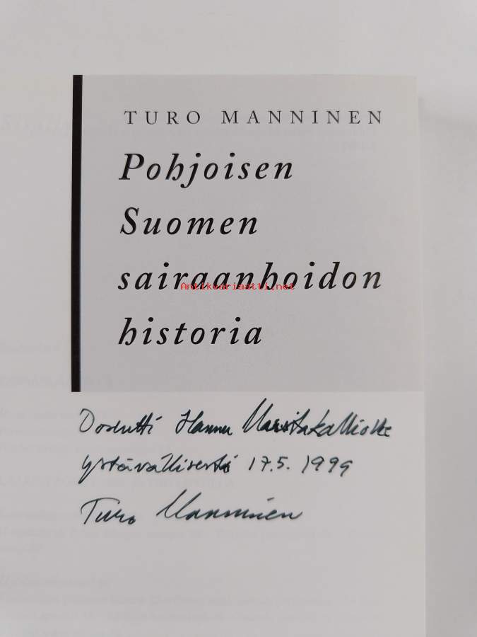 Pohjoisen Suomen sairaanhoidon historia (signeerattu, tekijän omiste)