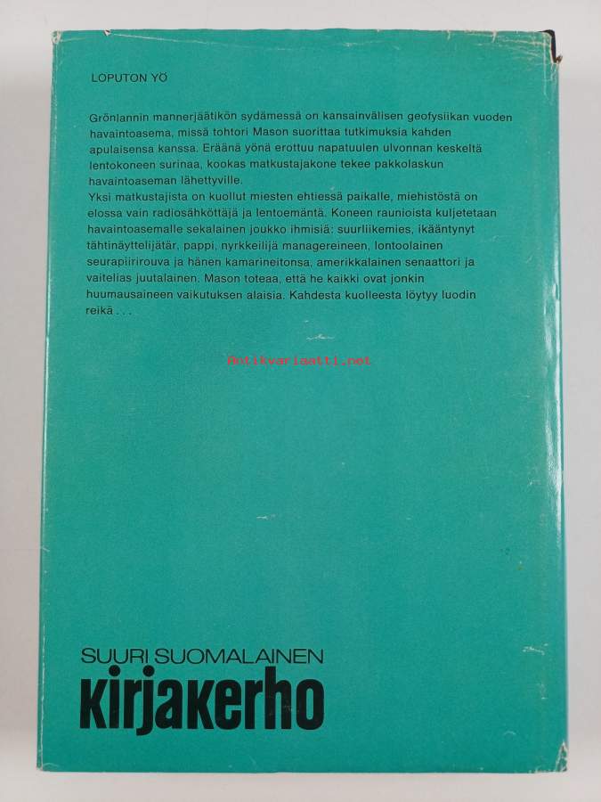 Loputon yö. 1968. 6.p. Tutkimusasema Grönlannin mannerjäätikön keskellä. Outo matkustajakoneen pakkolasku, murhattuja ja huumattuja matkustajia. Mistä on kysymys?