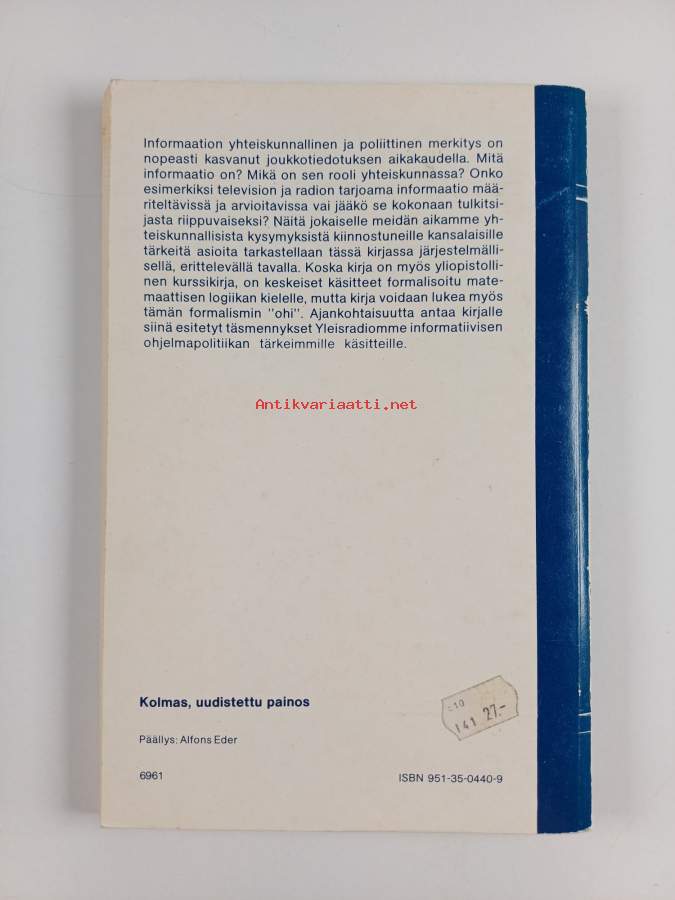 Informaatio : informatiivisen joukkotiedotuksen loogiset perusteet