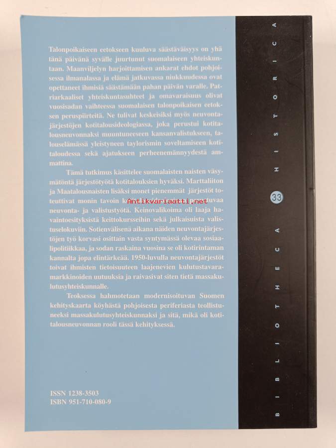 Sarja: Bibliotheca historica 33Asiasanat: historia, kuluttajaneuvonta, kuluttajapolitiikka, kotitalousneuvonta