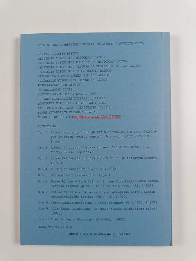 Muu(t) tekijä(t): Ari Uino, Markku LöytönenSarja: Suomen sanomalehdistön historia -projektin julkaisuja n:o 10; Suomen sanomalehdistön historia -projektin julkaisuja 10Asiasanat: historia, radio, puhelinliikenne, liikenne, tietoliikenne, posti, lennätinliikenne, trafik, datakommunikation, telefontrafik, post, telegraftrafik