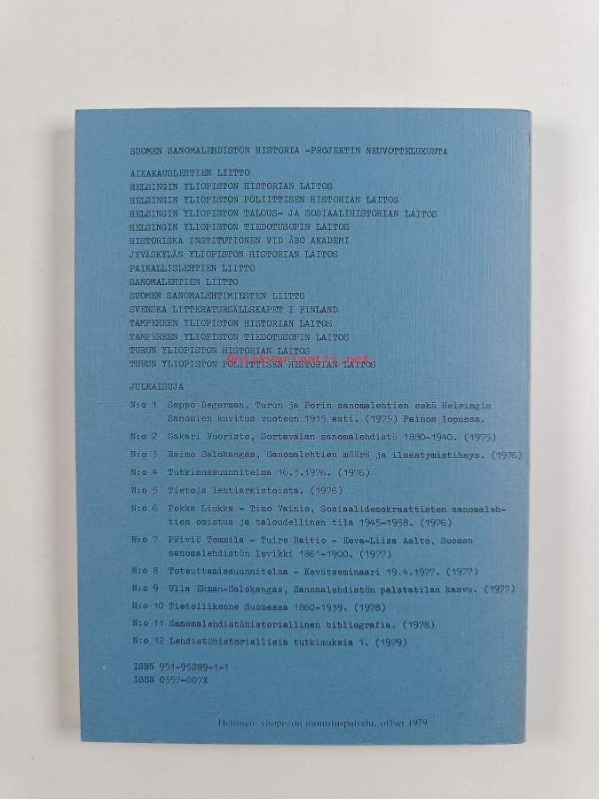 Sarja: Suomen sanomalehdistön historia -projektin julkaisuja n:o 12Asiasanat: historia, lehdistö, tidningspress