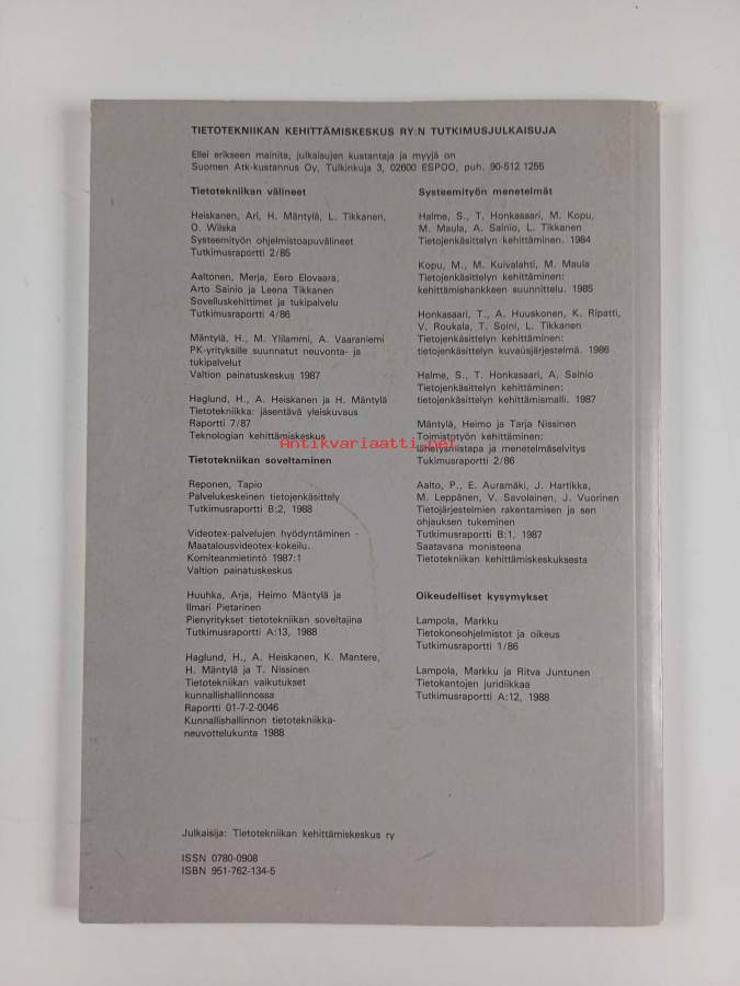 Muu(t) tekijä(t): Ritva JuntunenSarja: Tutkimusraportti / Tietotekniikan kehittämiskeskus. A 12Asiasanat: tekijänoikeus, tietosuoja, oikeusinformatiikka, tietokannat, asiakirjajulkisuus, liikevaihtovero, sopimus