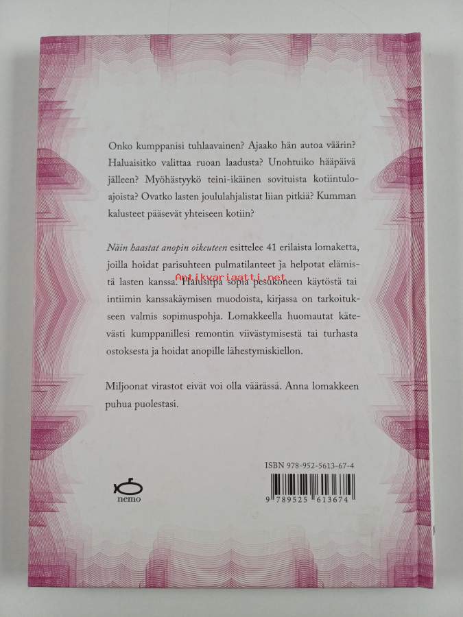 Muu(t) tekijä(t): Juho Gröndahl, Lotta HeikkeriAlkuteos: How to sue your mother-in-law ...and prosecute your kidsAsiasanat: huumori, lomakkeet