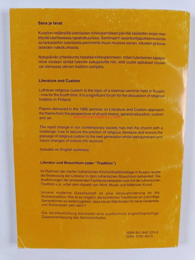 Sana ja tavat : kirjan merkitys luterilaisessa tapakulttuurissa