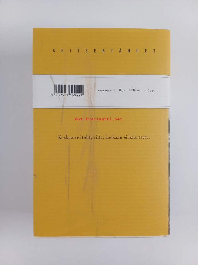 Hyvä. Tarkempi kuntoluokka: K3+ ; Pienoista kulumaa kansissa, pienoista kolhua selkämyksen alapäässä. Kansipaperin kunto: pientä kulumaa