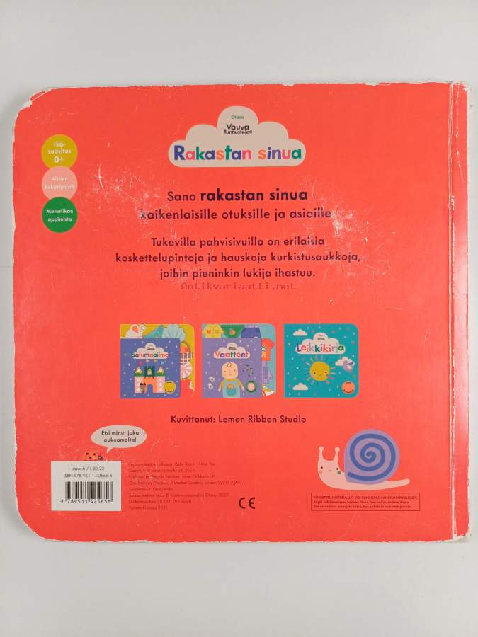 Sarja: Vauva tunnusteleeAlkuteos: Baby Touch - I Love YouAsiasanat: eläimet, vauvat, perhe, koskettelukirja, paksulehtiset kirjat