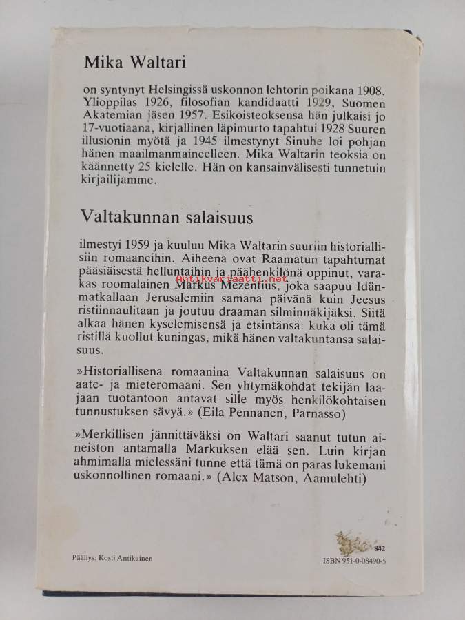 Hyvä. Tarkempi kuntoluokka: K3+ ; Pienoista kulumaa, selkämyksessä hieman vinoutta, takana hintalapun jäämää. Kansipaperin kunto: joitain repeämiä/kulumaa